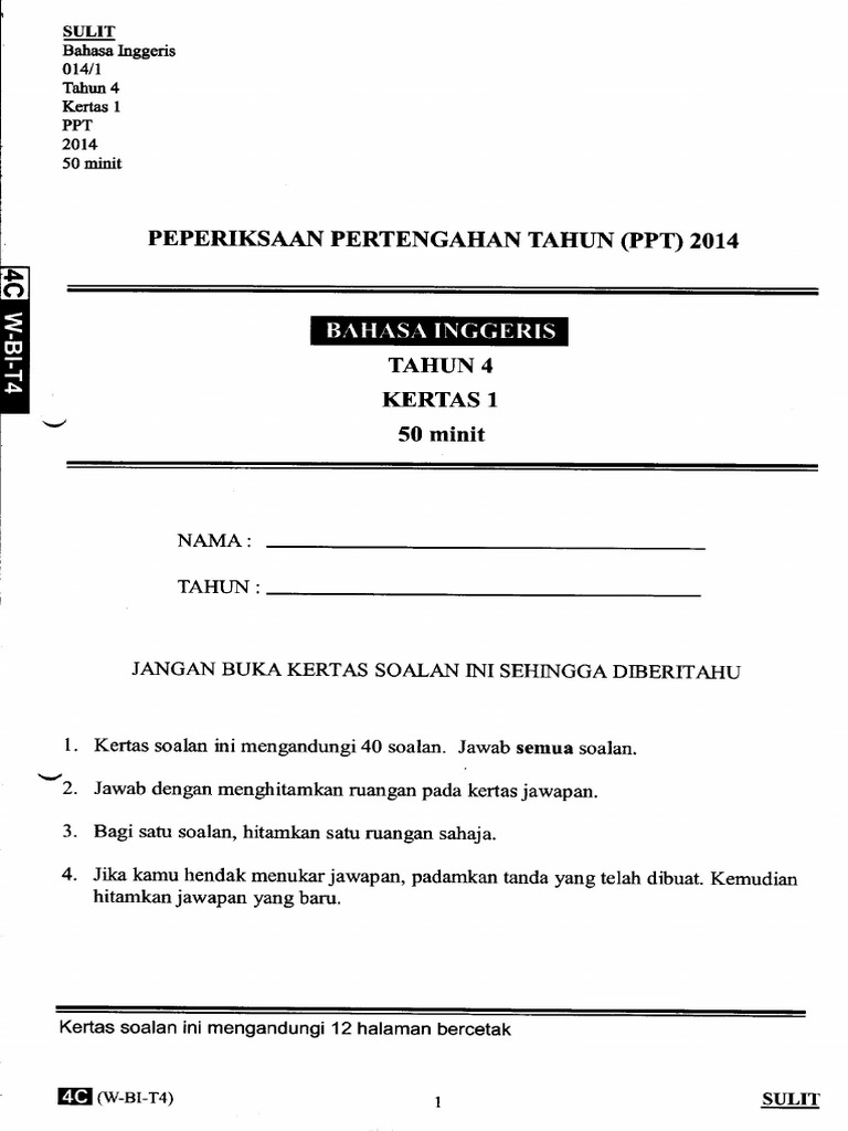 Kssr year 1 english exam via bahasa inggeris penilaian sumatif tahun 1 via www.scribd.com. Sq, eq dan ssq : Jawapan hendaklah ditulis di ruang. Soalan bahasa melayutahun 6, soalan bahasa inggeris tahun 2, soalan bahasa arab tahun 4, soalan bahasa malaysia tingkatan 1 soalan dan jawapan matematik tingkatan 5 bab 1 pendahuluan. Yang disediakan di dalam kertas soalan. Soalan bm bahasa melayu pemahaman tahun 5 via www.scribd.com. Contoh soalan matematik tahun 1 dalam bahasa inggeris. Related posts to soalan dan jawapan sajak roti. Contoh jawapan soalan percubaan bahasa melayu kertas 2 via retibahasa.blogspot.com. Contoh soalan tahun 4 bahasa melayu. Kertas peperiksaan ini adalah bahasa inggeris untuk murid darjah 4 mengikut kurikulum standard sekolah rendah (kssr). Lembaran kerja pendidikan islam (bersuci) via www.slideshare.net. Sebelum itu, pastikan anda sudah memuat turun dan mencetak kertas soalan set 1 dari link yang disediakan di bawah, siapkan kertas tersebut dan kemudian baru semak jawapan melalui perbincangan dalam video ini.