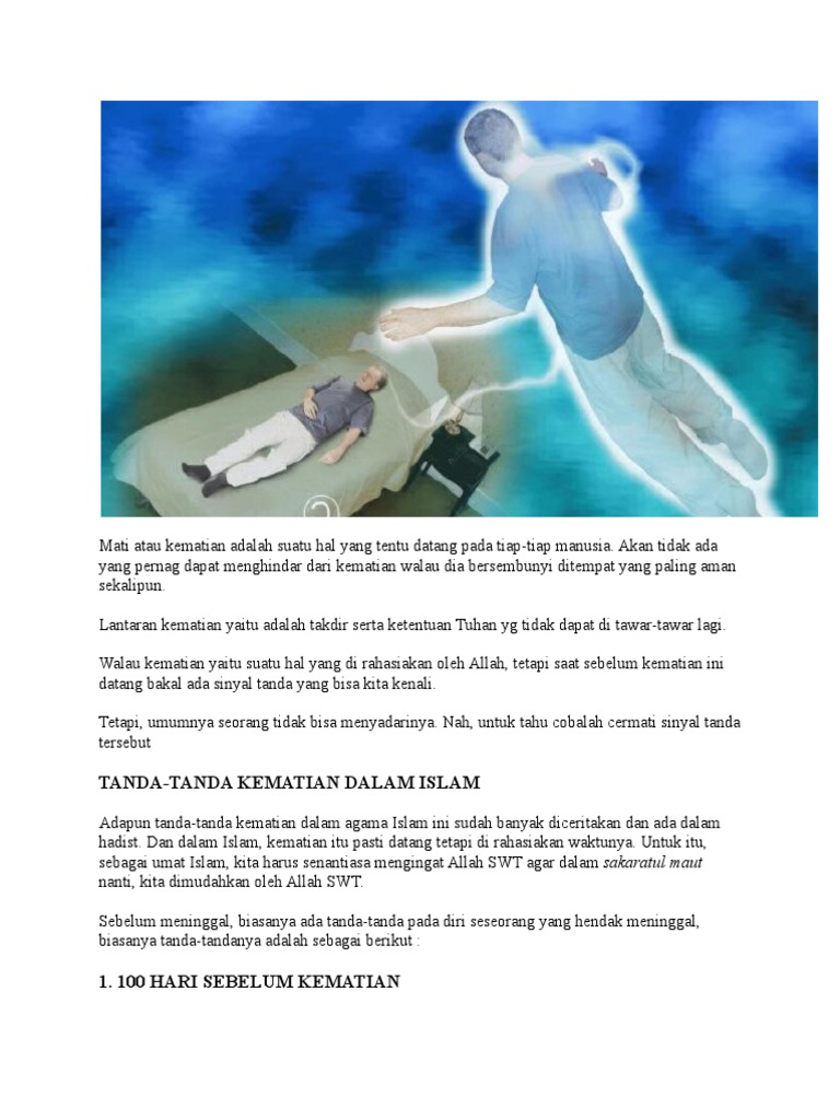 Tidak ada yang tahu waktu mati kecuali allah. Tanda 100 hari menjelang kematian. Tidak dipungkiri lagi bahwa kita hanyalah menunggu waktu untuk kembali kepada sang pencipta, tanpa tahu kapan hal itu akan terjadi. Tanda kematian dalam islam, siapa yang tahu? Dalam beberapa riwayat, banyaknya kematian mendadak merupakan tanda akhir zaman yang ternyata sudah sering kita temui saat ini.